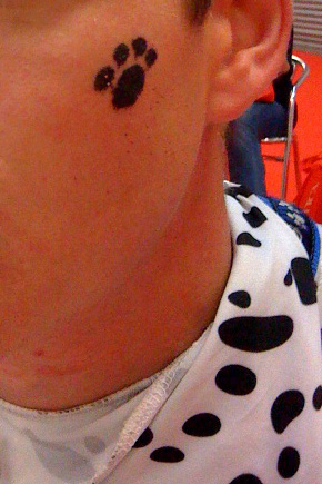 Finally, round to friends house for the party … on arrival I got changed into Spot and had the e-stim pads fitted, harness on, paws and lead.