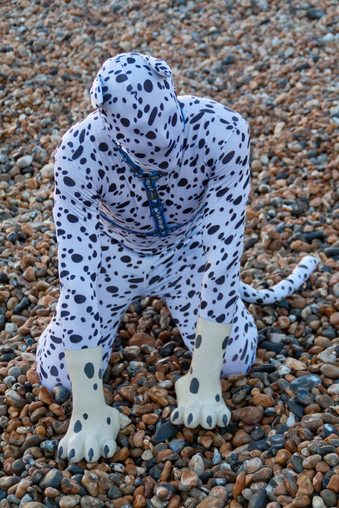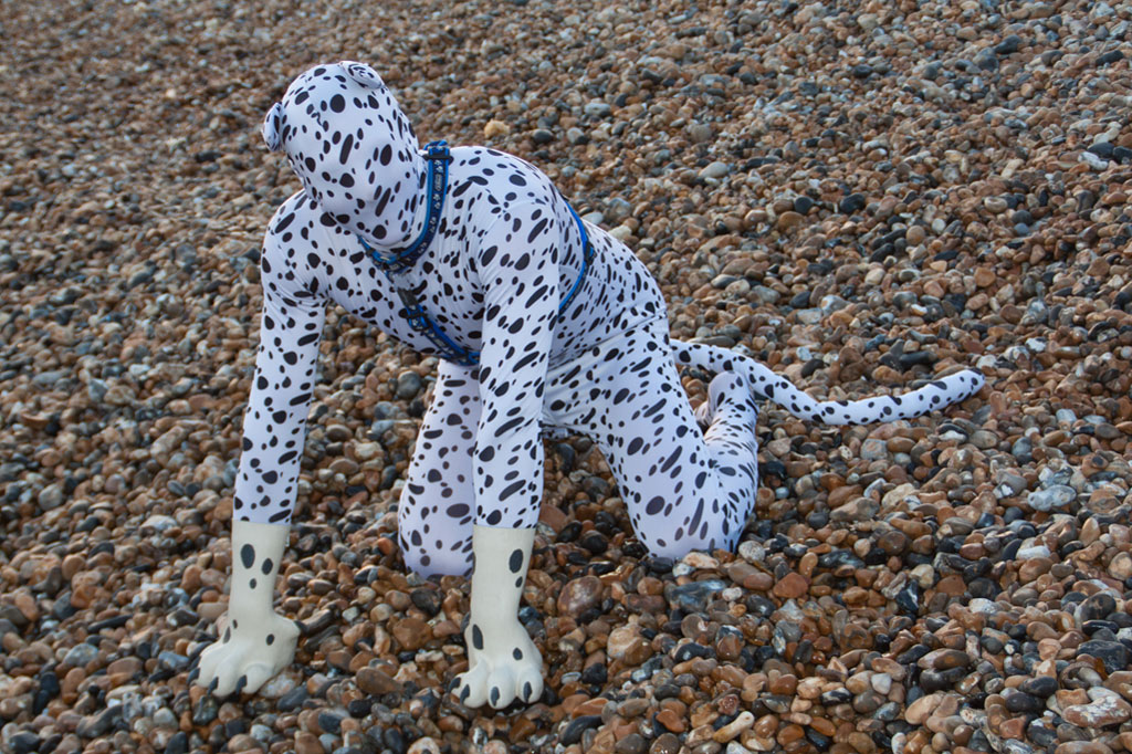On the one nice warm day that we had recently, my owner and I took a trip to Brighton Beach, for an (almost) completely innocent reason. However, as part of that trip, the subject of Spot came up and it was decided to demonstrate (since the outfit was with us) for the people we were with…