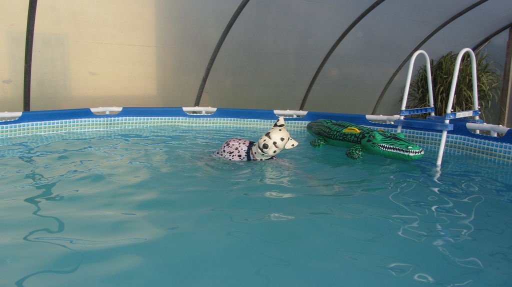 Spot’s other outing during the week in this post wasn’t quite so public, but was also enjoyable. The campsite where we stay has a pool that is available to use, and after having packed everything up on the Sunday before we left, I decided it was time for Spot to have a bit of a dip, as it meant the gear could be washed the moment we got home. I wandered off to the pool, fully kitted out and had some fun in the water, which hopefully these pictures and short videos show.