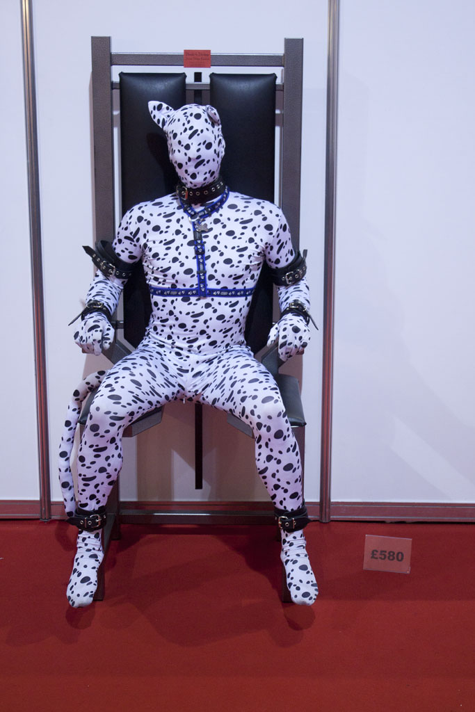 The first post I found was over at Down the Rabbit Hole which features a picture of me. The only problem with the article is that there’s a minor error in the section relating to me being in the cage. Unfortunately, the stall that is described as doing the wooden furniture is not Bound4Bondage, but is instead MIV Fetish Furniture. The cage is actually metal, and made by Bound4Bondage – and the majority of the toys they sell are metal.