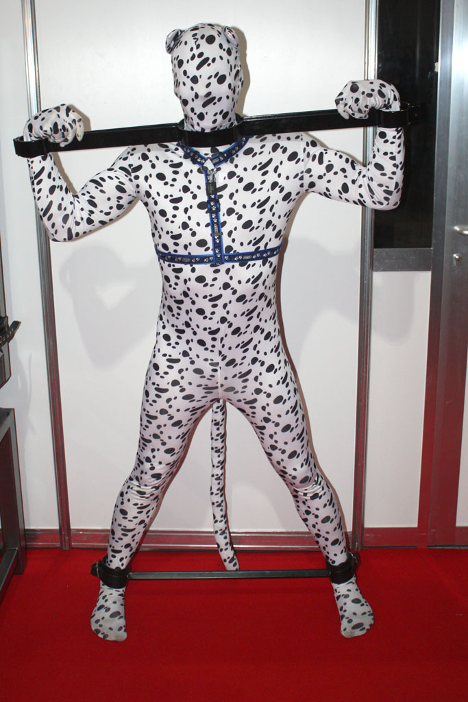 Yesterday, I received a package in the post, containing a new dalmatian print Zentai from ZentaiZone… although with a difference. This was the first Zentai I’ve tried where instead of the zip running up the back of the suit, it runs up the insides of both legs – so you put it on over the head, like a T-Shirt or jumper, then you tuck your feet in and do the zips up. I have to say, I’m quite impressed with the quality and fit of the suit, as it doesn’t go ‘see-through’ when I put it on as some have a tendency to do so on the white parts. I’ll be looking to buy some more suits from them in the future.