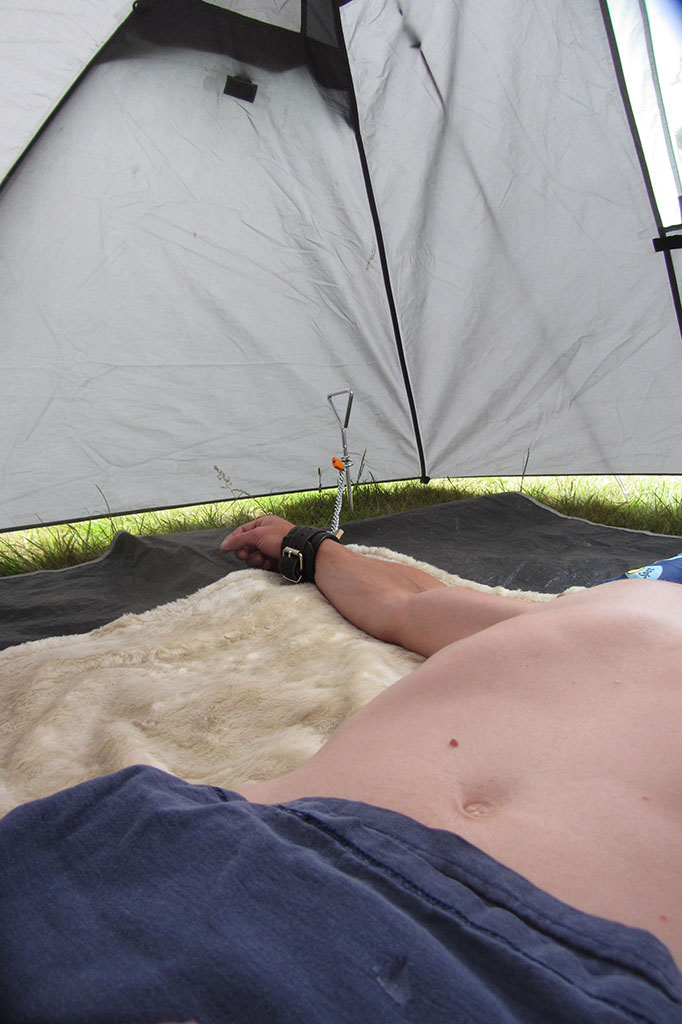 I woke up on the Thursday morning and after an initial coffee, I was let out the puppy restraints and re-dressed in to the same outfit as the night before (with the addition of a sold blue cock ring) while we sorted out what the plan was going to be for the day. A casual chat over breakfast revealed that 3 of the group were going to go and get more shopping to cover catering for the other members of the group when they arrived on the Friday. My owner, Forester and I decided we would erect the messy marquee – where all the gungey games and things would take place – while everyone else was out, to save time. Admittedly, we also had a slight motive for doing this as we wanted to make use of it that afternoon π