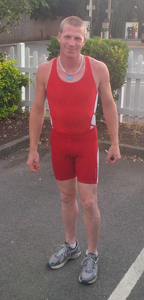 I started off in a blue tri-suit for the journey there and got to show it off as we had a couple of comfort stops along the way. We arrived on site to find everyone else had arrived before us – a good thing, as it meant that they had started on their tents and the ‘relaxation area’ for the week, so we could work out where to position our tent. Our first mission was to get our tent up and my bed sorted for the week – the dog cage goes inside the main sleeping area of the tent, and much to everyones surprise, it’s where I sleep π