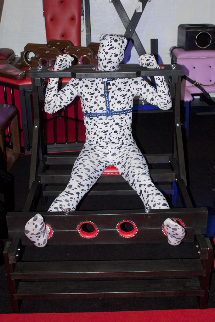 We stayed around at the end on Sunday and gave a hand to pack up the E-Stim Systems stand, and also roped in Gizmo and Shadow to help, as they were travelling back to the exact same station we were. With the stand packed up and the van loaded, that was the end of Erotica 2013. My owner and I were both good this year, and only bought a pair of underwear for me (if you can call it that!) – though we did see something we might consider buying one day, but perhaps £2000 on a bed is a bit extreme!