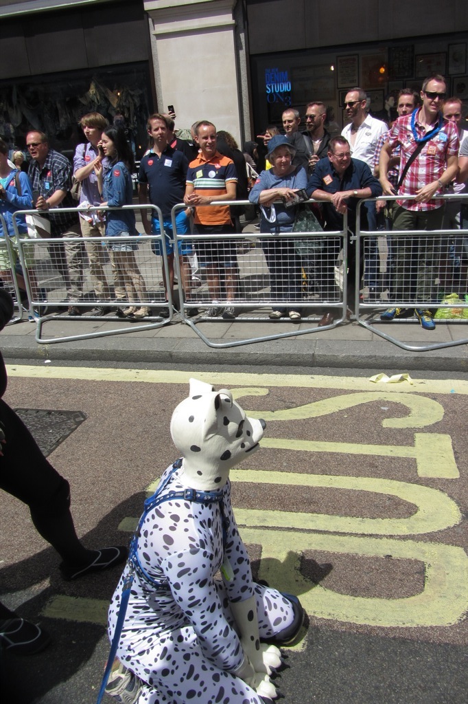 12:50pm – Just before the parade starts: Knee Pads checked, hood on, paws on, lead clipped on, and I’m ready to go; it seemed ages, but we eventually set off.