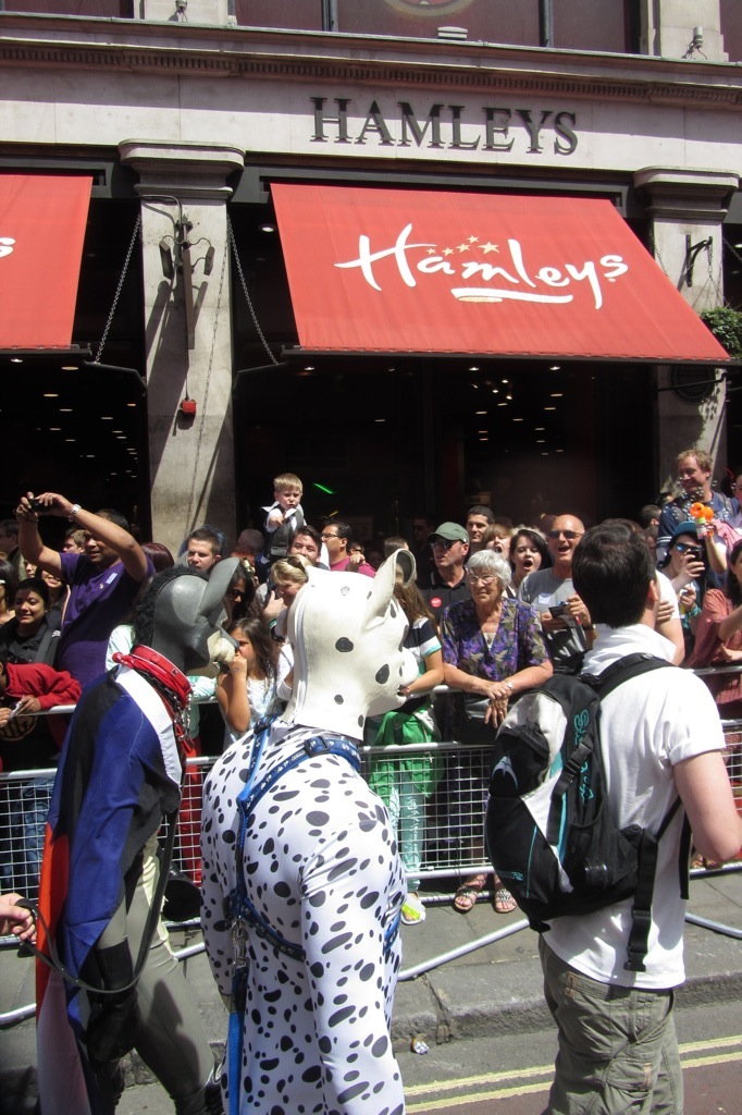Well, today has been a fun day out at London Pride – A long post follows, but enjoy π Pictures will appear in a blog post later on today once we’ve edited them. Also, I will ask my owner to write a bit about pride from his perspective as I become in to the full mindset of a puppy so I don’t see and remember all the audience reactions and what else is going on around me in the parade.